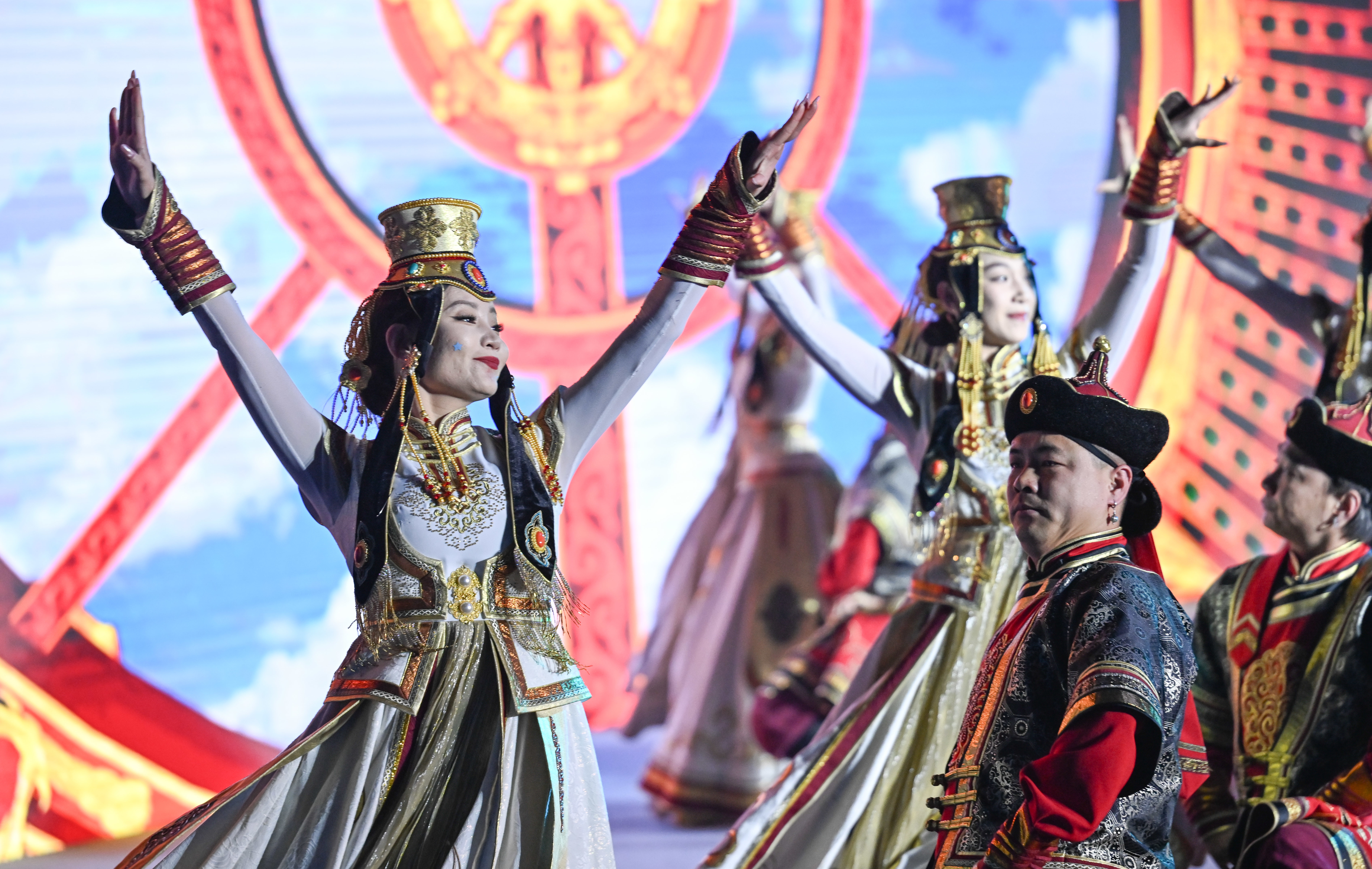 4月16日,演员在开幕式上表演舞蹈。新华社记者 贝赫 摄